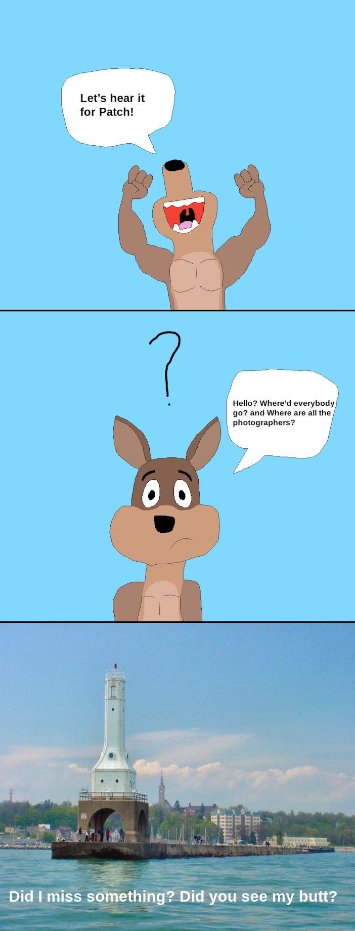 Let’s hear it for Patch! Hello? Where’d everybody go? and Where are all the Photographers? Did I miss something? Did you see my butt?
