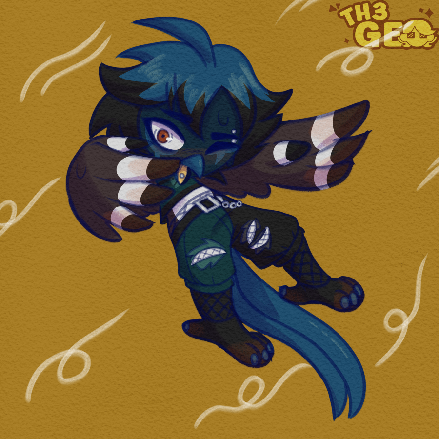 Drawing of my OC Sebastian that I did in between comms work~ He's just a silly bird with skill issues flying xD