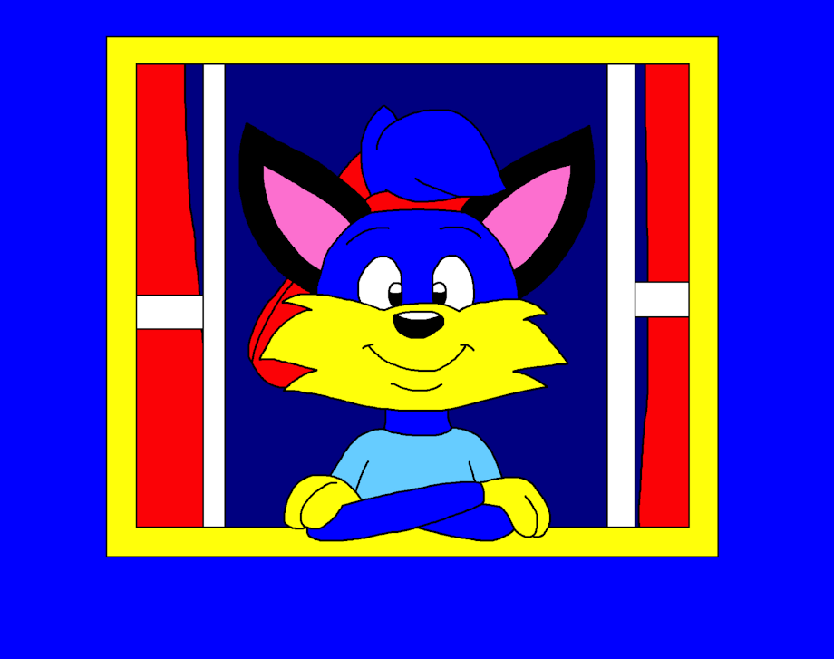 Walks past mowing lawn, stops, bumps finger on nose. "BOOP!" Carries on.