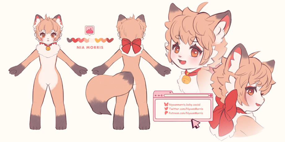 she wears a bell with a big red ribbon on the back, can also be seen with many random hair accessories in other arts