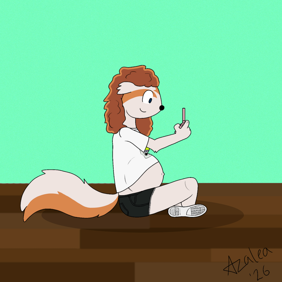 of their character Kaya, just sitting on the floor and playing on her Nintendo DS while pregnant. A nice casual and wholesome piece to draw and figure out the composition of.