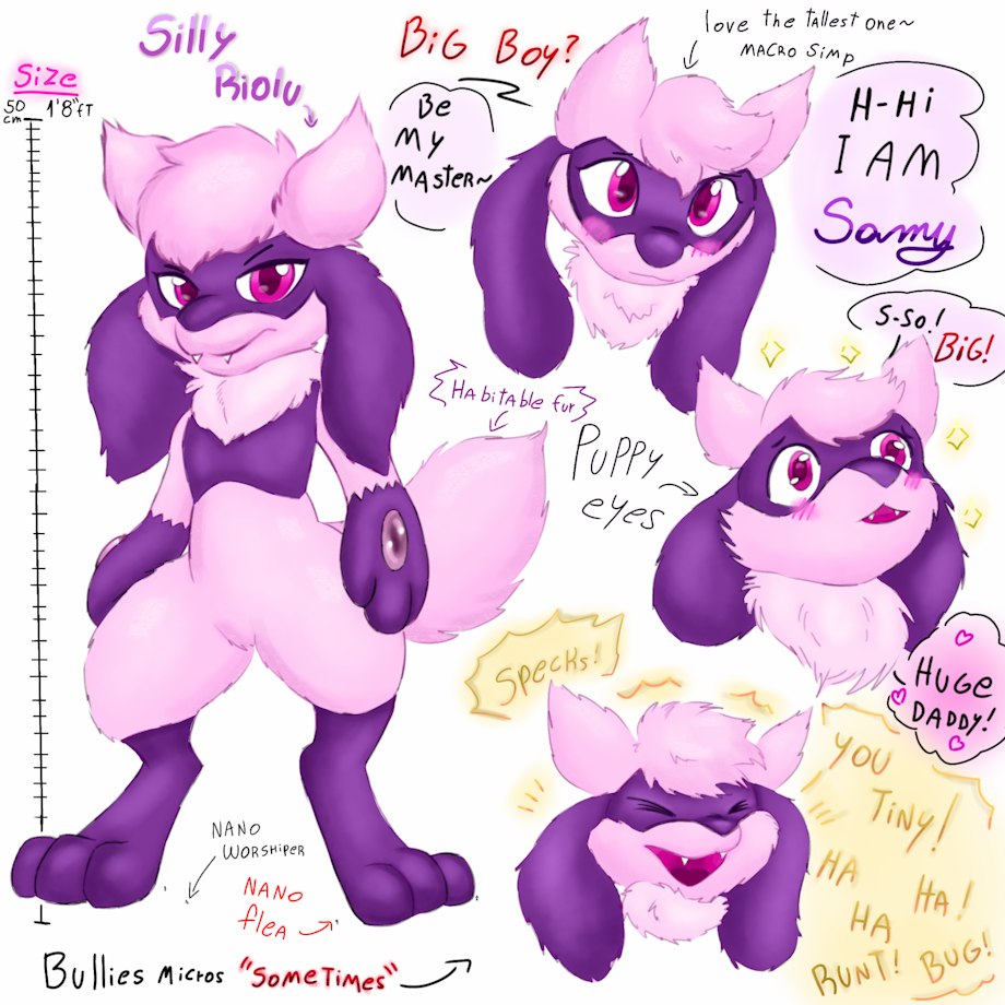 She's a somewhat silly, lazy, clumsy, and dim-witted Riolu who loves playing on the PC (or any mobile device, really) and eating... she's not interested in fighting. She's kind of like Glep from Smiling Friends, doing absolutely nothing 24/7. She's very attracted to males, especially if they're taller than her and have a muscular or well-built physique. She likes being girly and smol. Although she denies it, she enjoys being made to feel tiny and vulnerable by others. The perfect pet or toy for the right owner. She finds the sounds of a stomach relaxing and attractive.