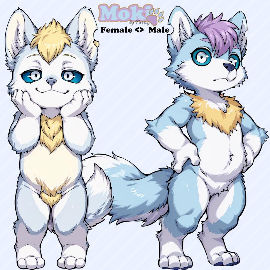 I’m Moki, a cheerful little wolf with a big heart and soft blue fur.