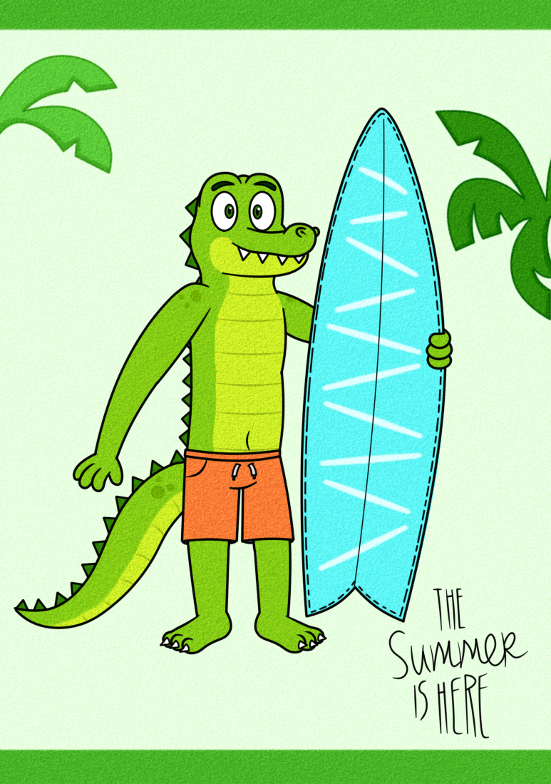 Inspired by a summer crocodile-patterned towel I have at home, I decided to make a version featuring Croc, and it also includes different outfits.