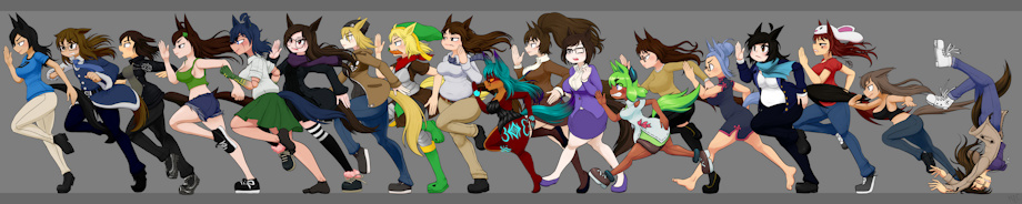 This my yearly tradition as a way to thank those who commissioned me the most and were most active in my community, as you can see in the pics I've done for years now: 2019, 2020, 2021, 2022, 2023, 2024. You made this possible by supporting my artwork all these years, 19 characters this time, including myself, it is the year of the horse after all, so I drew us all in a big race of Umas.