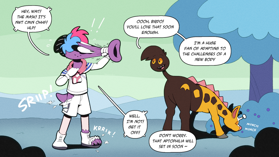Clyde didn't realize that the mask was going to be so formfitting, and he wants out of this mess! 17th mask comm for