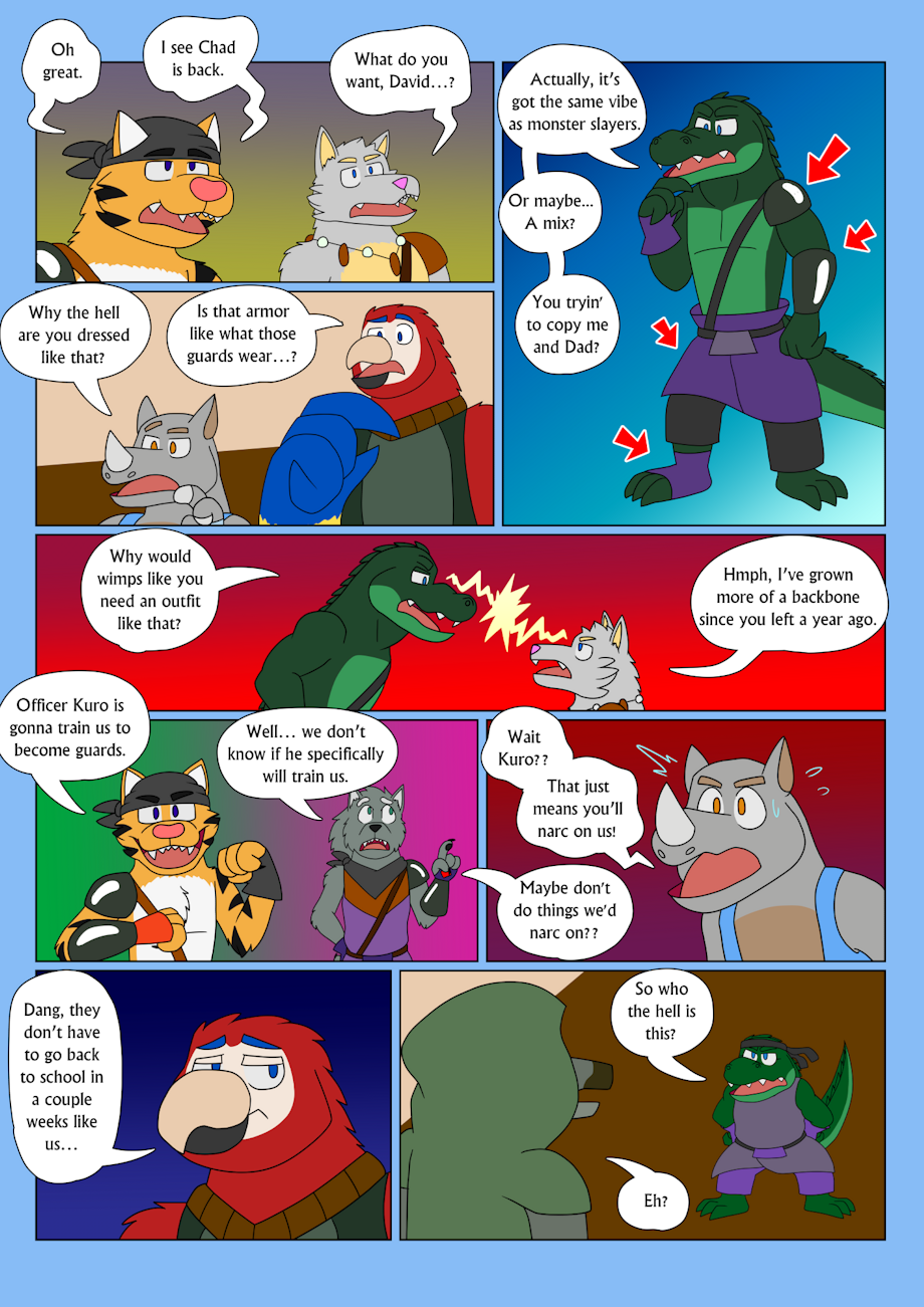 Cameos debuting on page 16 Jordan the Dragon - ryltohn on furaffinity Riley the Lion - blumasterblade on furaffinity Christopher the Cat - DCleadboot on deviantART