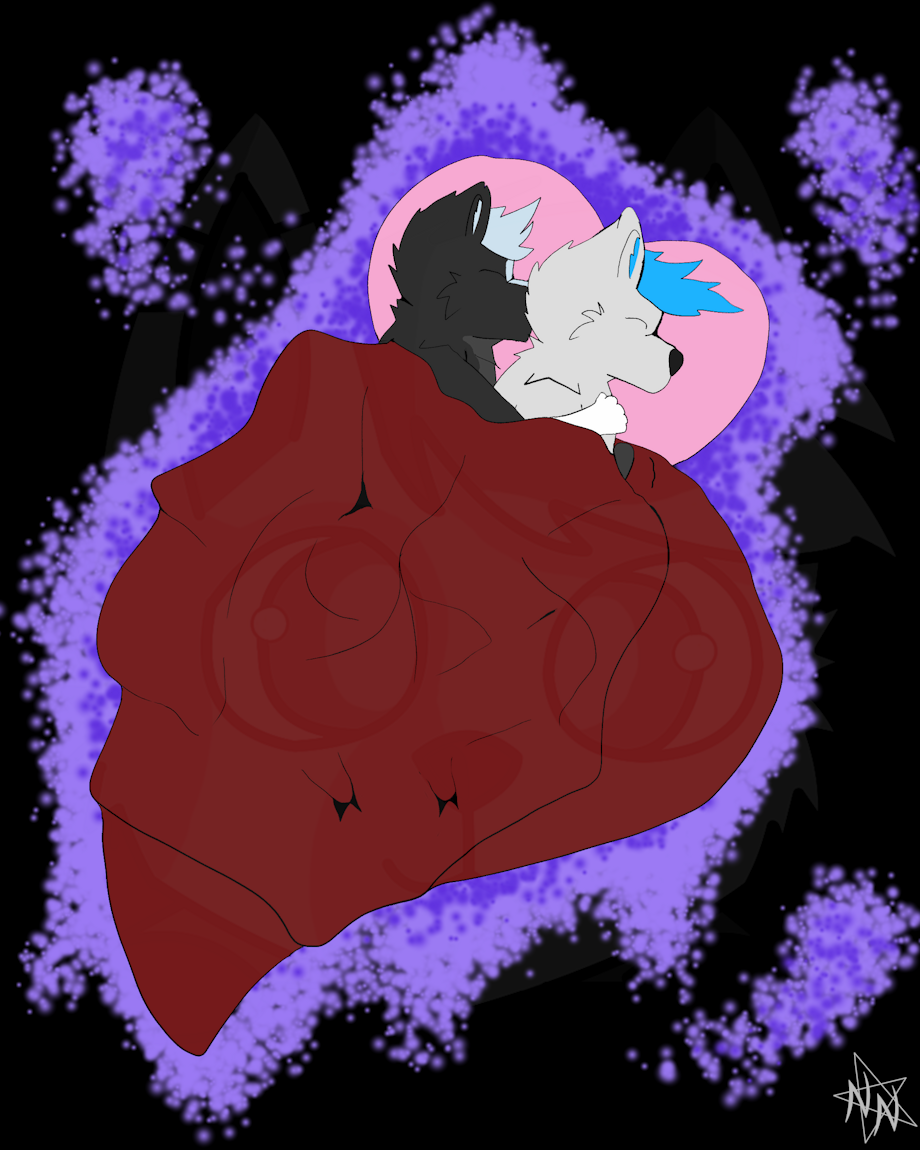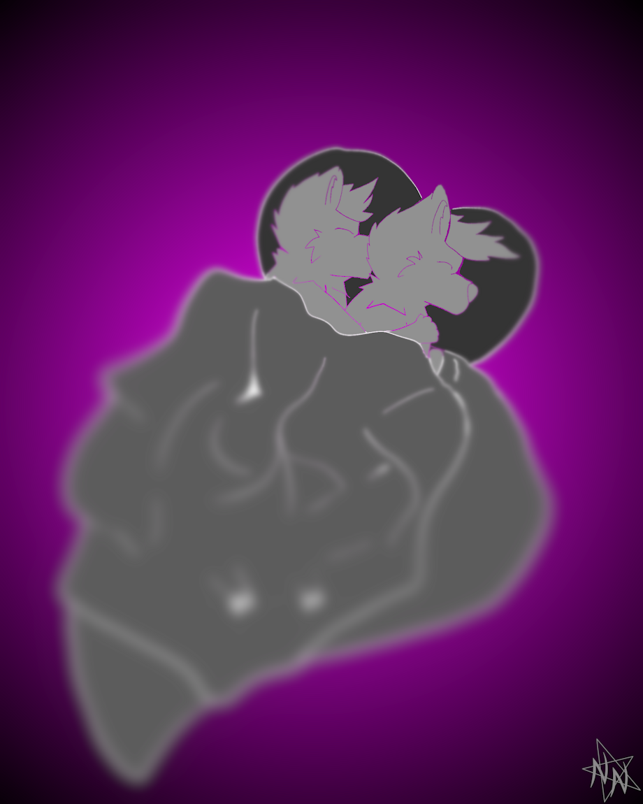 Here's the modified sketch of a new piece!! Look at Gaybe cuddling Nova, aren't they the cutest?! So cuddly and warm on this January day. "Do we have to get up?!"