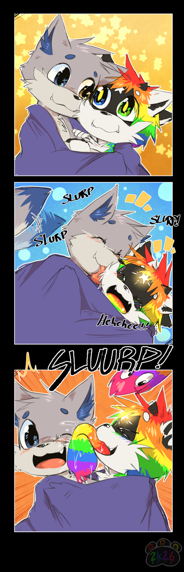 Suddenly slurpy doge attacks with love! OOO was afflicted with happy and smiles!