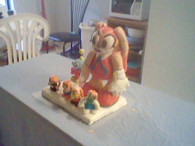 It's really the first time I ever made a cake sculpture that stands up. It wasn't easy, but I did pull it through. I also use gum paste to make the small Cream cosplay figures. It's also a first. In case you want to know the gumpaste figures, they are, in left to right, Shimigami Cream, Cheerleader Cream, Maid Cream, and Scientist Cream. Would I do it again? Umm . . . I'm not making a living with these, so I won't make too much effort on another cake sculpture.