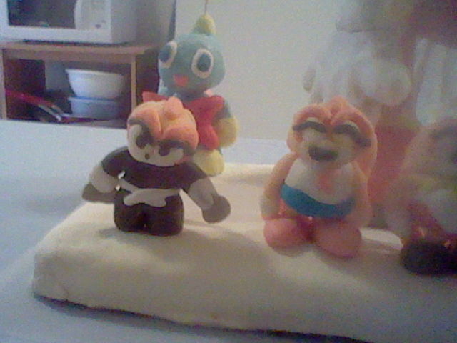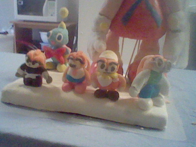 It's really the first time I ever made a cake sculpture that stands up. It wasn't easy, but I did pull it through. I also use gum paste to make the small Cream cosplay figures. It's also a first. In case you want to know the gumpaste figures, they are, in left to right, Shimigami Cream, Cheerleader Cream, Maid Cream, and Scientist Cream. Would I do it again? Umm . . . I'm not making a living with these, so I won't make too much effort on another cake sculpture.
