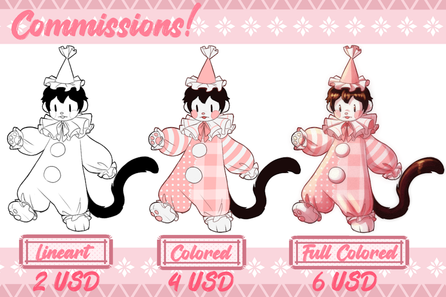 🎀About backrounds🎀 🩷🍓Background prices depends of the comm option choosed: 🩷🍓🌸Lineart: +2USD 🩷🍓🌸Colored: +3USD 🩷🍓🌸Full Colored: +4USD