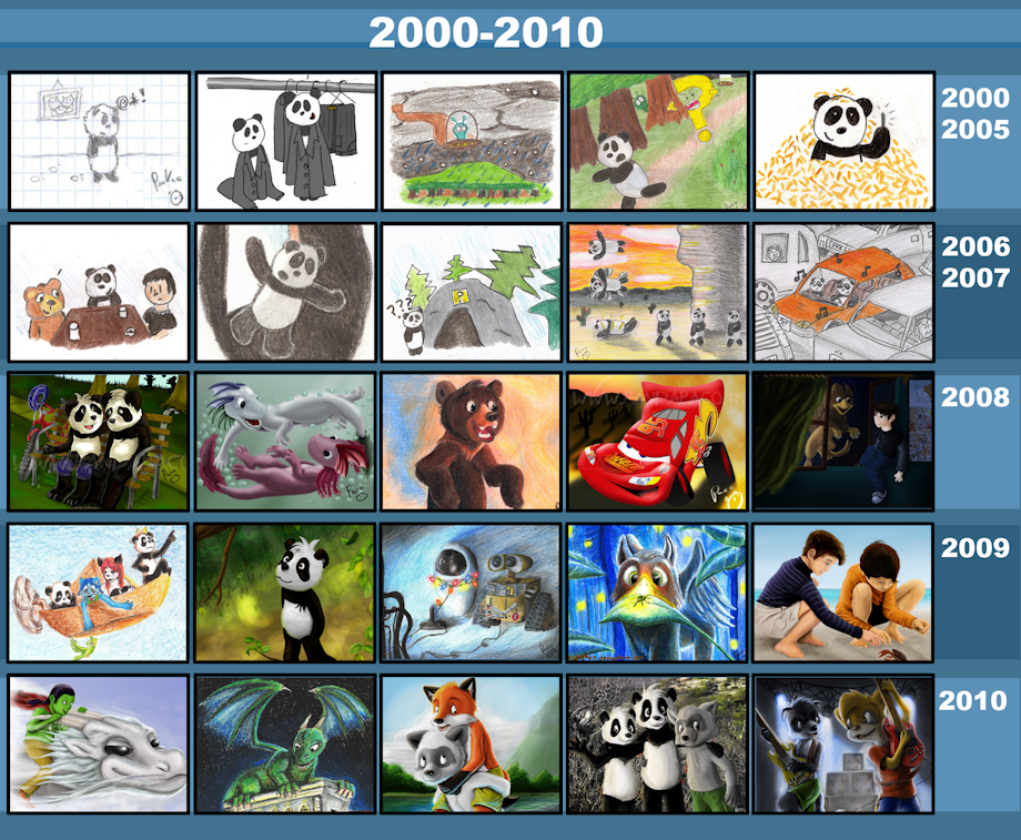 It was so difficult, and it took me some time, to select my 5 favorite pieces of each year, or at least the ones I considered "my best", and needing to drop many other that were also very personal favorites. But if you want to make a certain picture that is previewed here, I also made a list. Those that are on the first years I realized are not posted anywhere anymore, I just had them on my files.