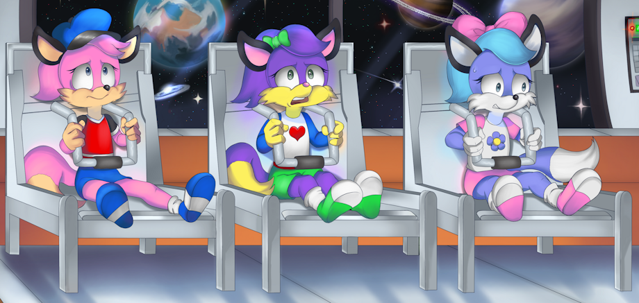 Becky, Lilly & Bluebell The Fox Girls Are On A Ride In A Space Theme Park,