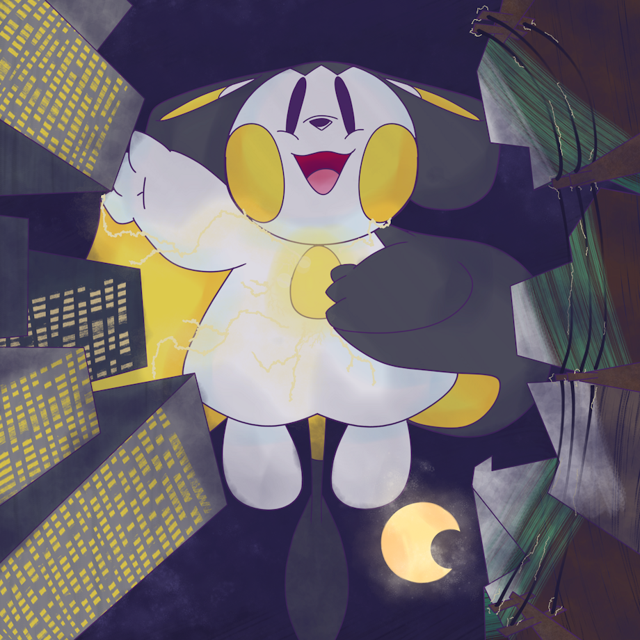 Absorbing all the electricity around herself with her lightbulb gem, as she pass over a city, with her progressively bigger form~