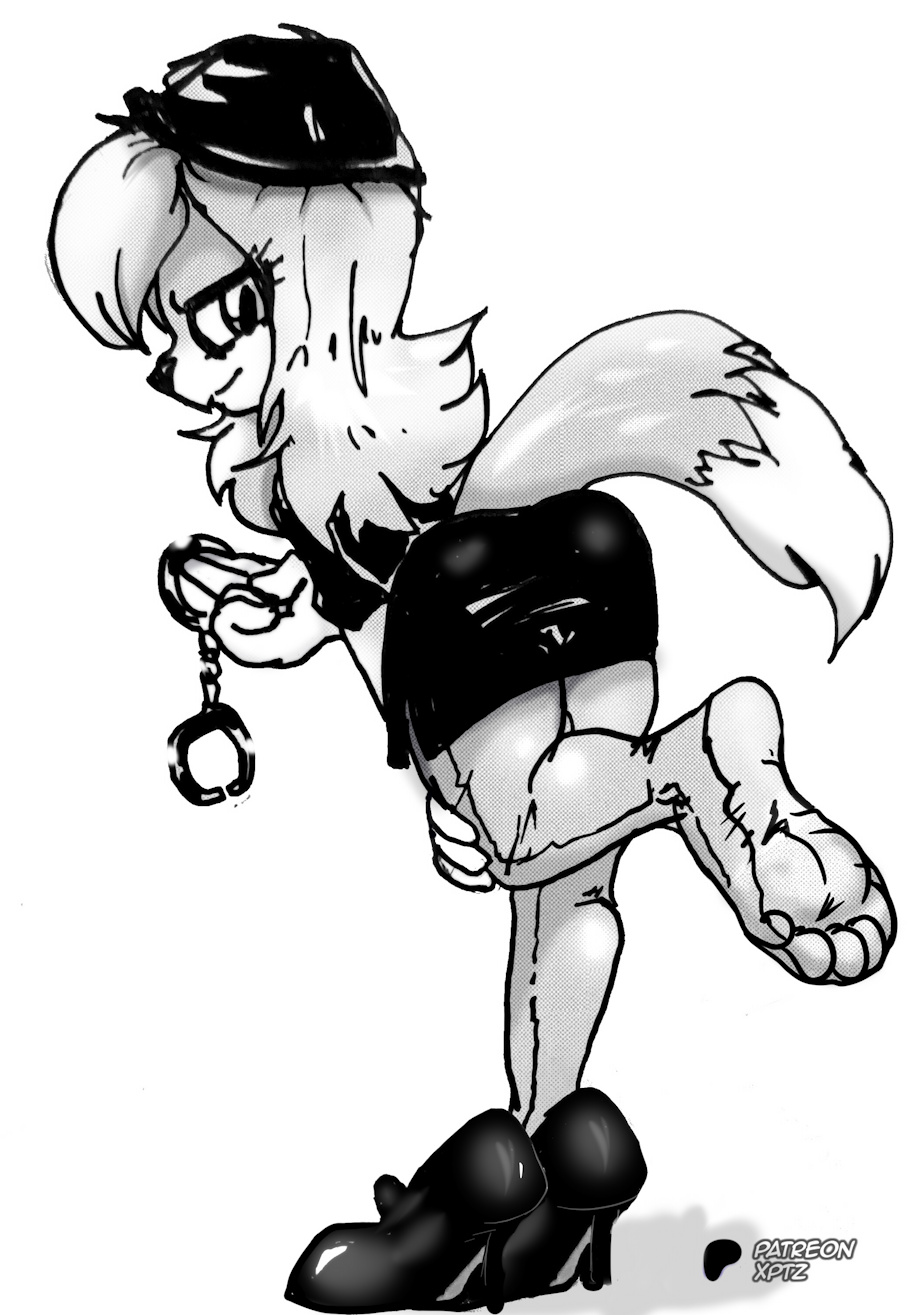 Image 1: Nancy the Panther and her magic boots. Image 2: Liea the Tigress giving herself a haircut while she has her separate hair between her toes. Image 3: Iris the Fox as a Japanese policewoman. Image 4: Imogen the Bat as an office worker with her feet on her desk. Image 5: Pamela the Badger as an Egyptian queen teasing the viewer with her feet. Image 6: Margaret the Red Panda showing her feet with candies between her toes. Image 7: Zafiro the Panther teasing the viewer with her feet.