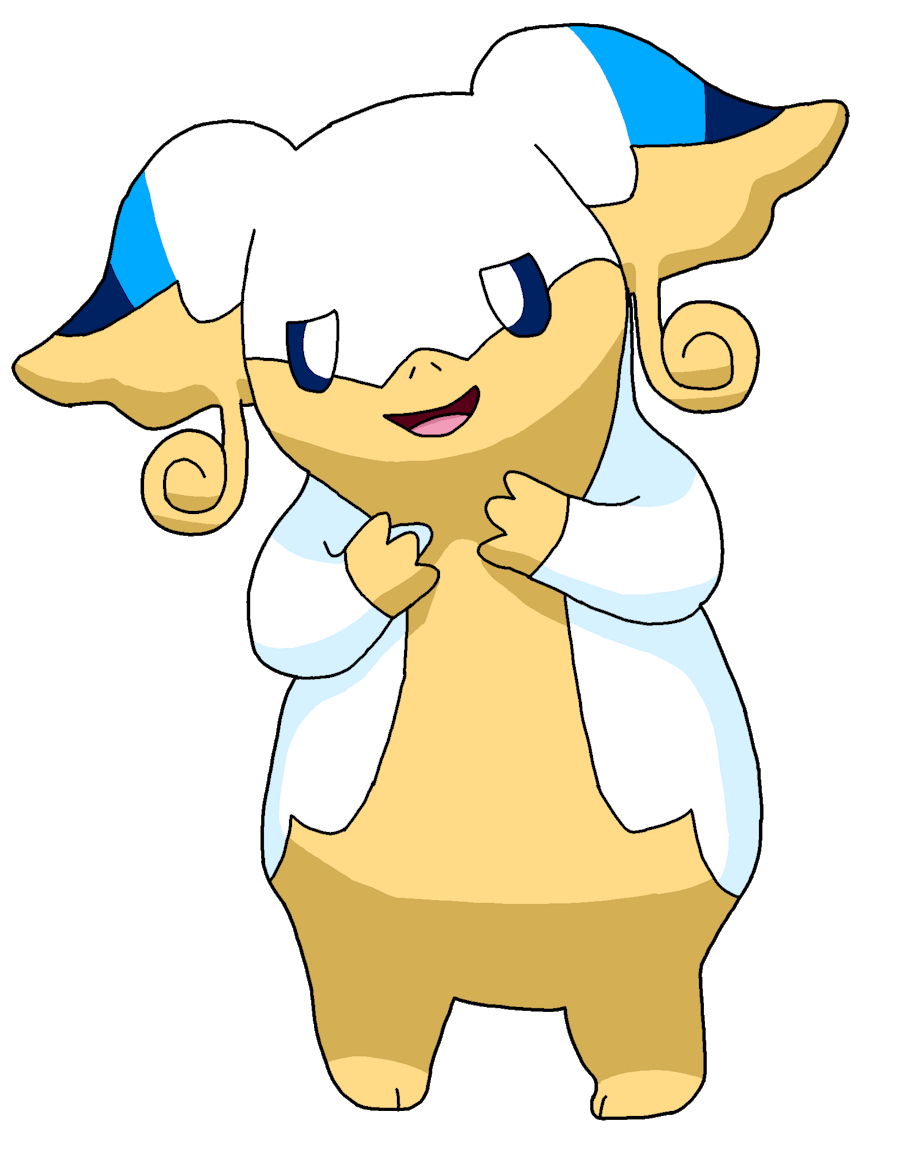 White fur with blue highlights, also lights on the face. Generally chubby