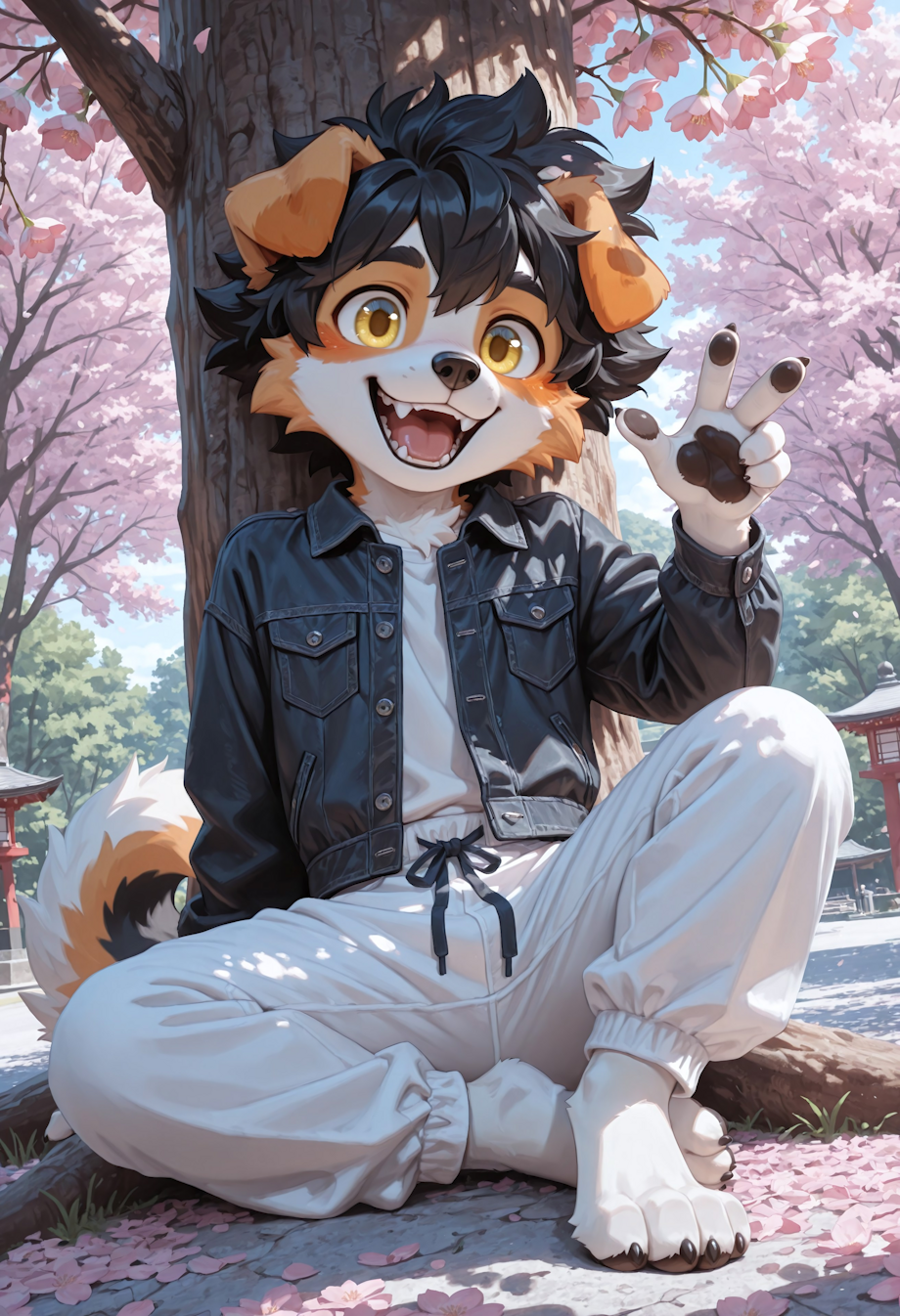 His hair is still that tousled, slightly messy black, but now it blends naturally into the darker patches of his coat, giving him a look that’s effortlessly charming and a little windswept. He has a habit of brushing a paw through it when he’s nervous.