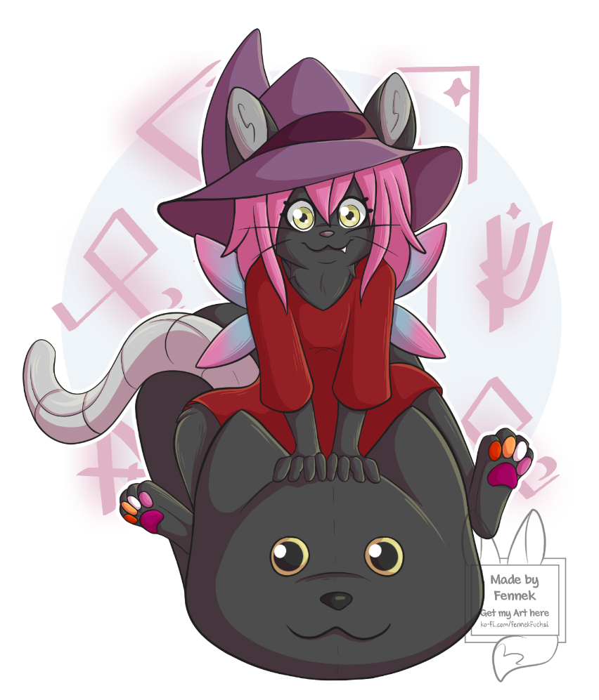 YCH - Black Cat Girl on Pillow