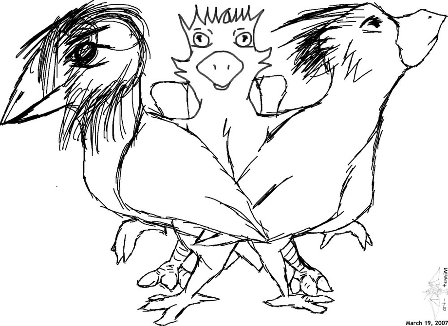 A bird and his two ... uhh... other birds. I guess at least one is female. The other seems more male to me for some reason