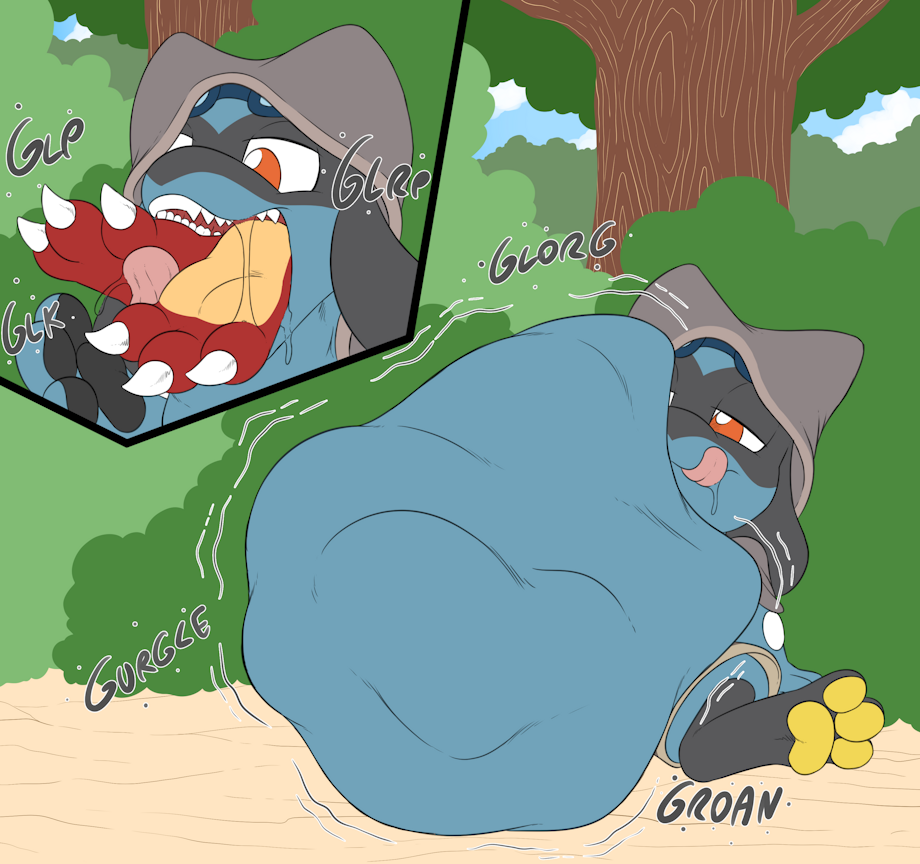 commission for Sly the Riolu. Looks like Magma met a worthy adversary and got gobbled up by the lil but tough adventuring Riolu uwu