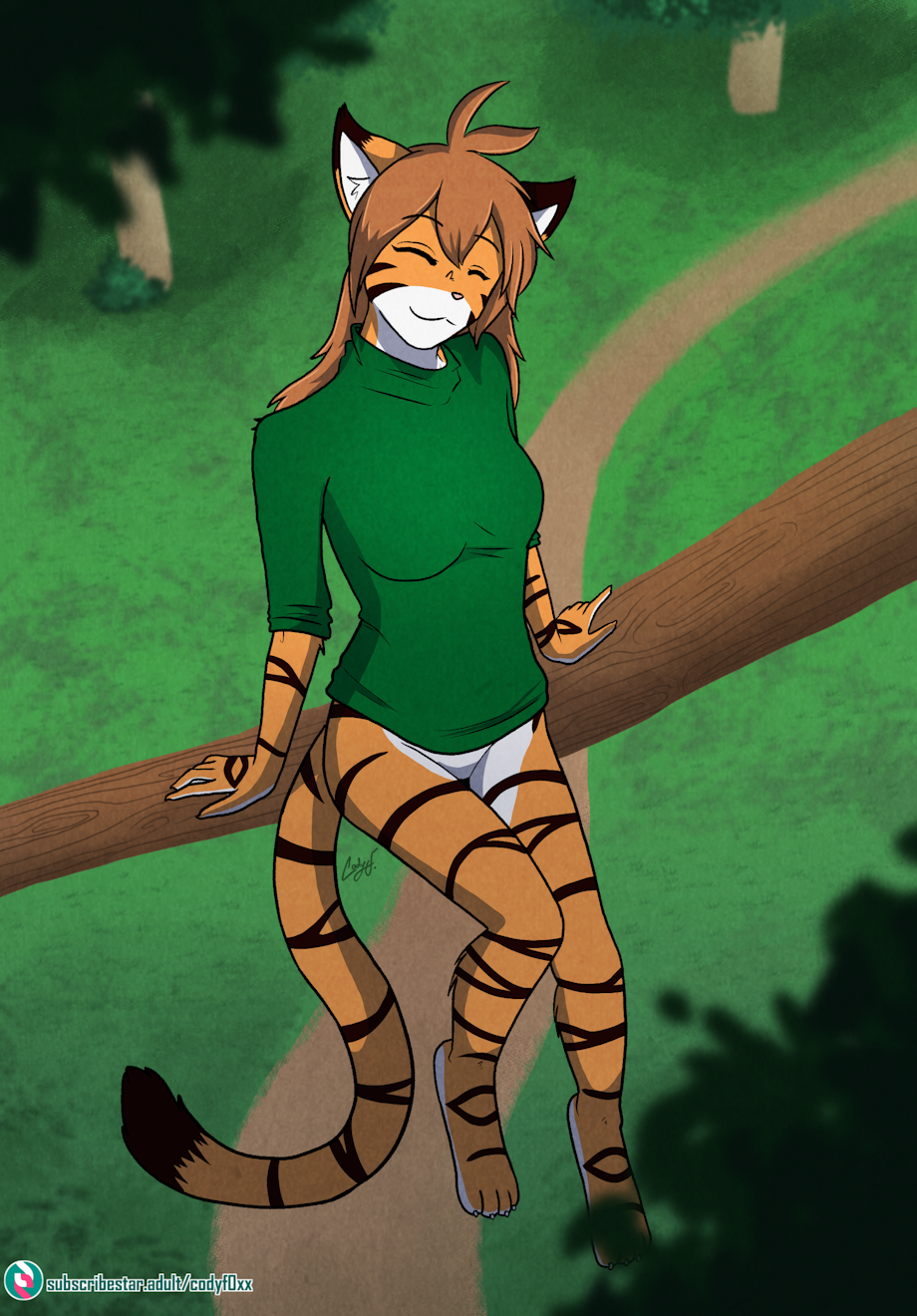 The second character! Flora! :D This is a scene from the early pages where she is in a tree waiting for Trace to leave a human town. I wonder who she's daydreaming of?