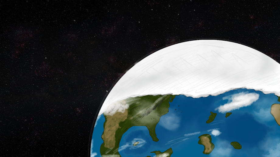 3-4-26 edit added Earth showing, Usland (one that looks like the US) and the surrounding island, Thembria (the landmass attached to the Polar North), and Ourland (off the right side, no in show name for the equivalent of Europe, so to keep the theme, I'll call it Ourland since it sounds like Ireland). The ice age version is for the intro cutscene of how Cape Suzette was formed, and its not from melting ice, something from outer space ☄.