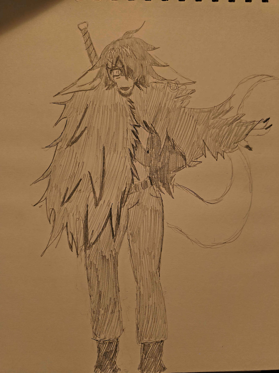 A recent sketch I did of Joltie looking badass and wearing one of those fur capes I've seen in some fantasy media.