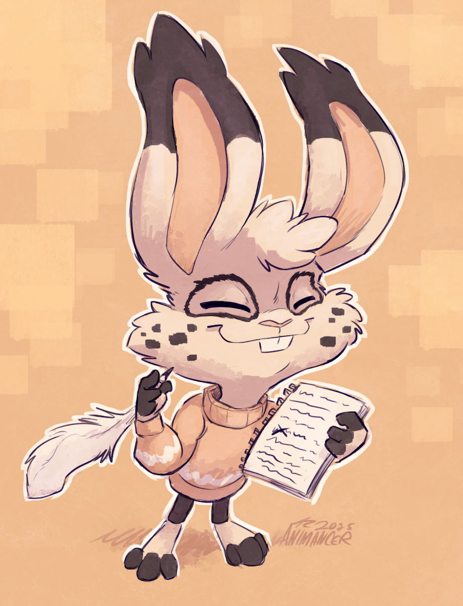 Dewriter's Johann who is, apparently, a writer. A writer who does writing. He do-writes. Also he isn't wearing glasses; he has circle spot fur patterns around his eyes. I promise it's healthy.