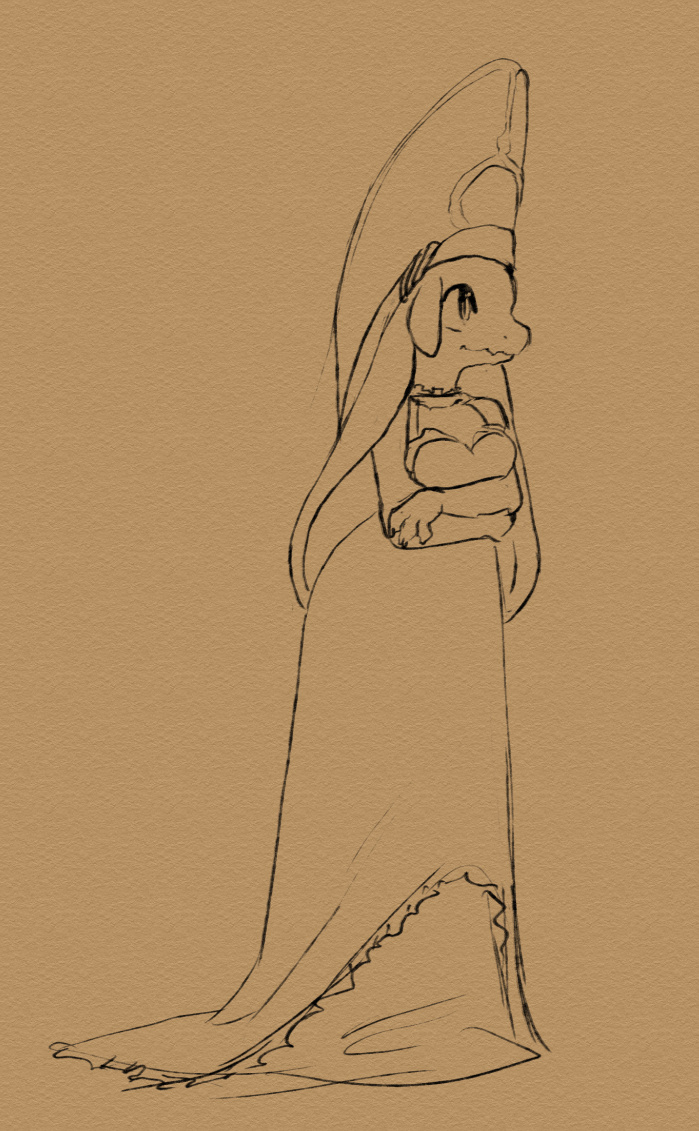 Other than the long ears and square-ish muzzle shape(not counting the "fangs" she has), she doesn't