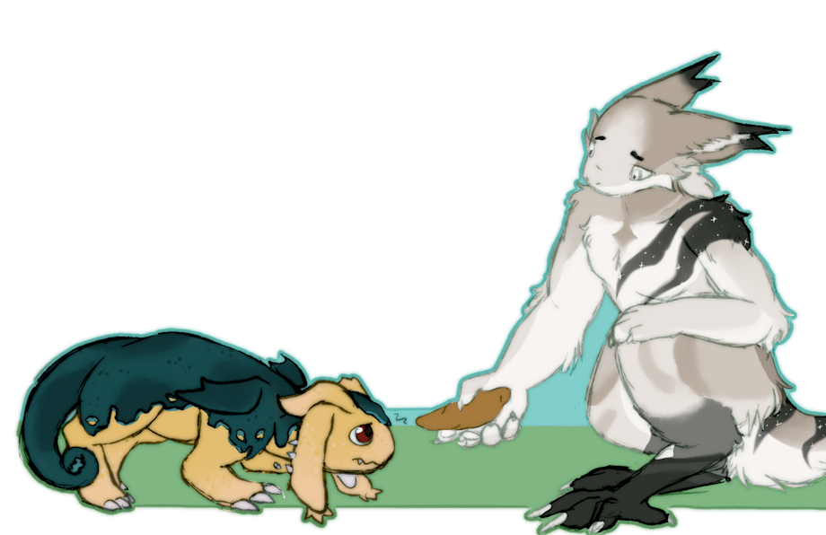I think that this little pumpkimp didn't have the best first impression of the world, they seem a bit skittish... Luckily for them, Falstaff's one of the most patient sweethearts you could meet. Hopefully he can get them to perk up a bit.