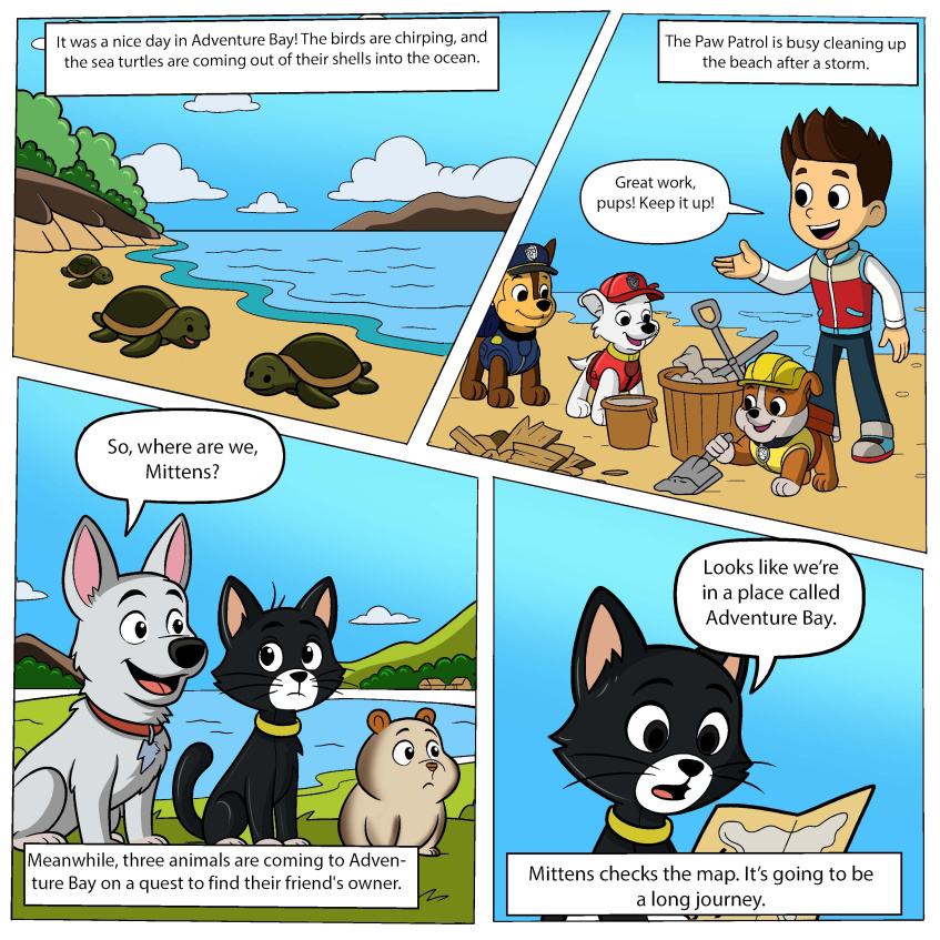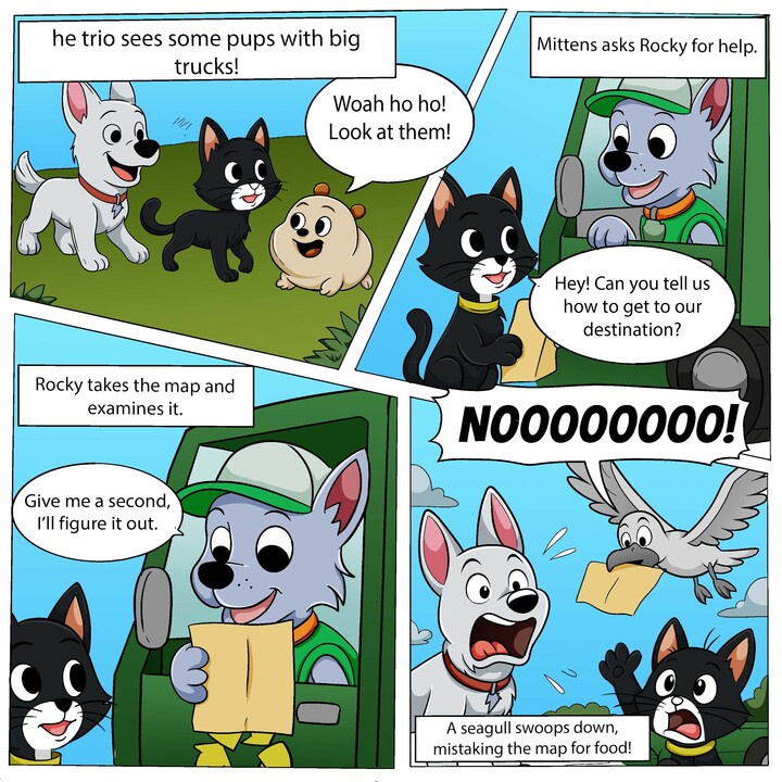 Paws On Adventure is a light-hearted comic that follows a group of curious animal friends as they begin an exciting journey togetherEach panel is designed to feel lively and approachable, making the story easy to follow and enjoyable for all ages.