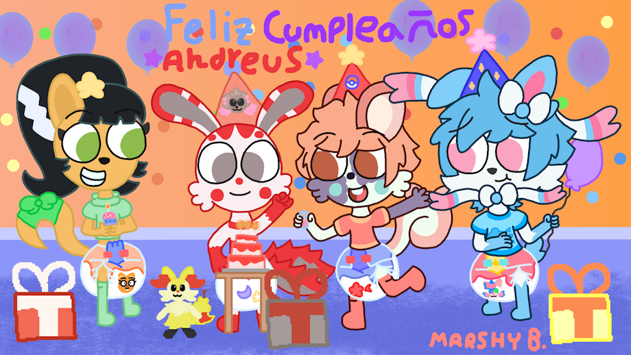So after the new year, Marshy decided to prepare a birthday party for his friend Ahdreus (Wolf's sona) as well inviting Will and Katty to celebrate it together ;3 🌟🌟