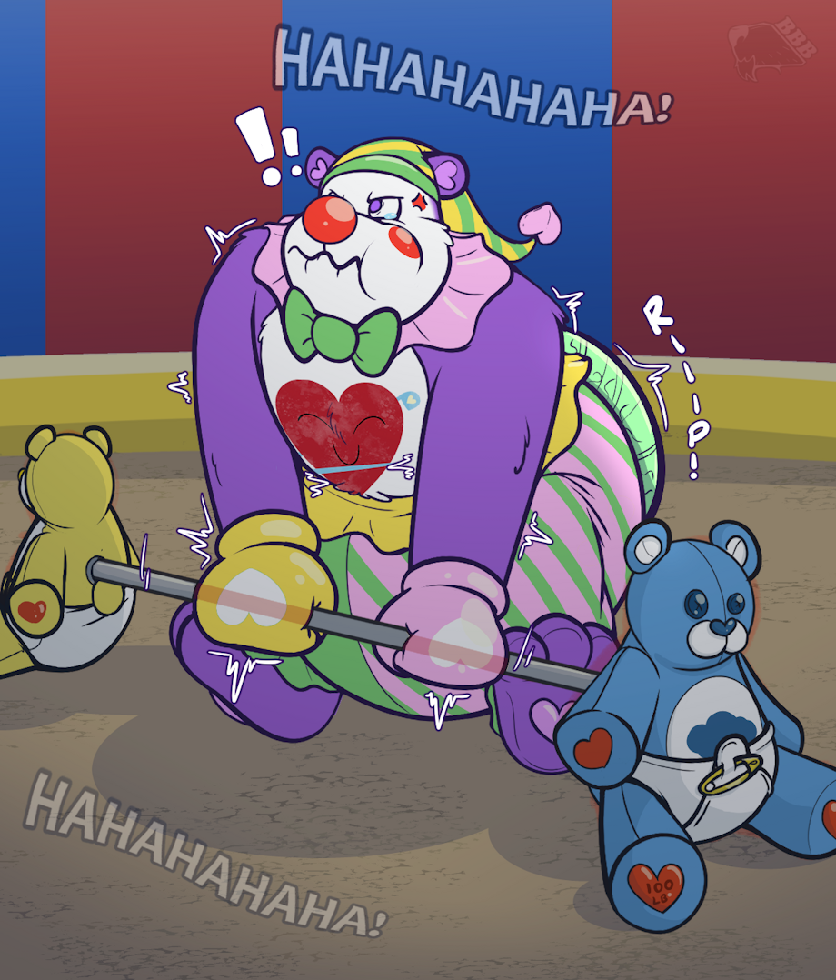 YahB was excited to be a part of the diaper clown circus. First act he came up with was a strong man act. But the others thought he'd look much sillier if he didn't look as strong as he wanted to. He'll be laughed at for days. And that's just how diaper clowns like it~