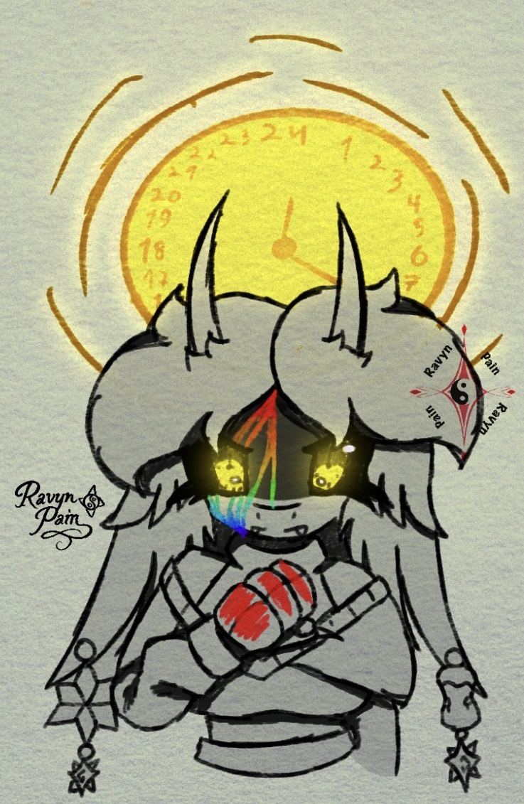 🌙 A doodle of Ravyn while he is acting as the concept of time. His eyes are becoming clock-like due to his ability to manipulate time. Yes, his halo clock goes up to 24 hours. This is because days on the planet Zexade are twice as long, totaling 48 hours. 🌙