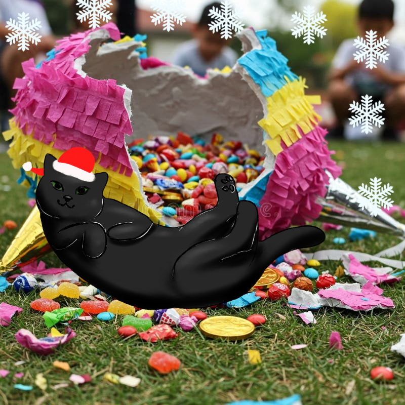 ) about one of her cats having fun with a piñata uwu