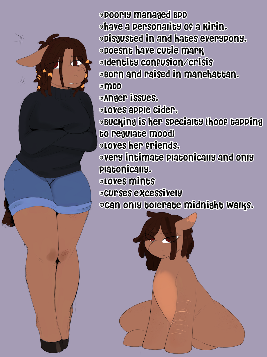 Literally a Kirin except she doesn't have an outlet to help calm her down or ease her thoughts.