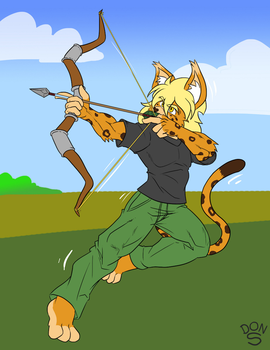 It’s time again to show one of my characters’ hobbies. Cedric’s turn in the spotlight today and his specialty is… Archery. Yep, the nervous and lovable feline has a pretty big interest in the bow and arrow. He’s been practicing since his high school days, and it shows in his technique and marksmanship results. I can safely say that there’s next to nothing he can’t hit, so don’t take him lightly when he’s got a bow in hand.