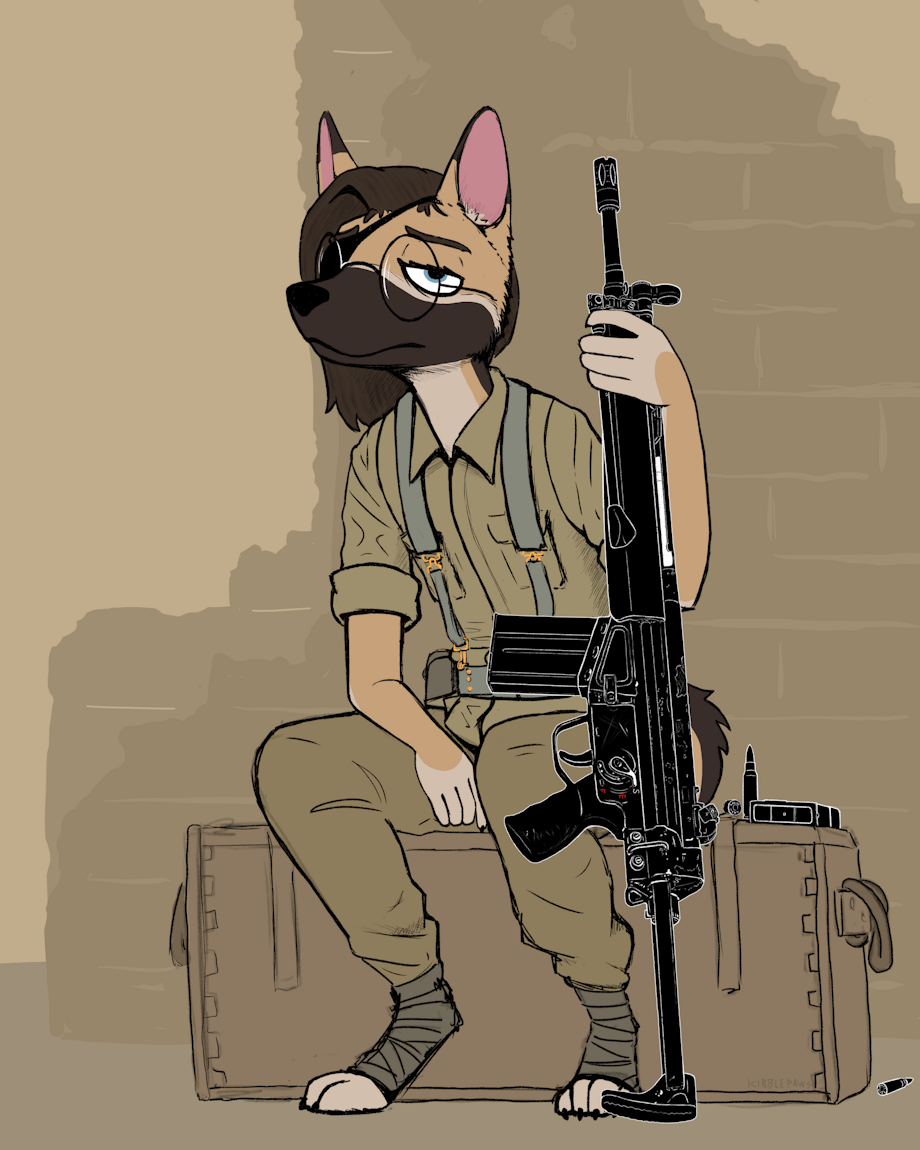 I wanted to do something a little self indulgent while practicing more sketchy stuff. Self indulgent in the way of spending way too long detailing the gun, which is the focus of this piece really. But it also served as a bit of a vent piece in a way. Enjoy.