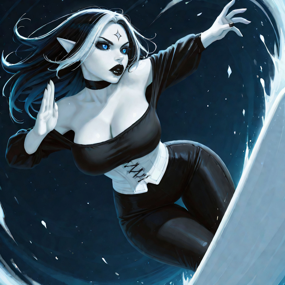 HYPERREALISM, masterpiece, high quality, detailed fur, high detail, 32k_uhd, fine details, intricate details, highest quality, perfect anatomy, perfect face, detailed face, detailed eyes, perfect eyes, very aesthetic, concept art, masterpiece, best quality, amazing quality, ultra-HD, high resolution, ultra-detailed, absurdres, highly detailed, detailed eyes, source_furry, no lineart <lora:(1) FenrisXL Lighting:1> <lora:(1) Mjölnir (SDXL Lighting):1> <lora:photorealistic anthro 2:1> furry (black tunic, off shoulder, black pants, white corset:1.4) (alert eyes, side eye, joy:1.4) (dynamic, fighting stance, sliding, surfing on ice:2) <t4m4k1> (female:tall:elf:1.4), (short girl:1.4), (black hair, two tone hair, white highlights, shoulder length hair, hair, fringe:1.4), (black diamond mark on forehead:1.3), (blue eyes, black sclera:1.4) (white skin:1.6), (big lips, black lips:1.4), (black nails, pointy ears:1.4), (hoop earrings, nosering:1:.4), (thigh gap, wide hips:1.4), (big breasts:1.3) (face marking, black markings:1.4) Negative prompt: bloodshot eyes, arms behind back, hands behind back, blurry, blurry background, bad anatomy, bad hands, three hands, three legs, bad arms, missing legs, missing arms, poorly drawn face, bad face, fused face, cloned face, worst face, three crus, extra crus, fused crus, worst feet, three feet, fused feet, fused thigh, three thigh, fused thigh, extra thigh, worst thigh, missing fingers, extra fingers, ugly fingers, long fingers, horn, realistic photo, extra eyes, huge eyes, 2girl, amputation, disconnected limbs, worst quality, normal quality, low quality, low res, blurry, text, watermark, logo, banner, extra digits, cropped, jpeg artifacts, signature, username, error, sketch ,duplicate, ugly, monochrome, horror, geometry, mutation, disgusting, jpeg artifacts, , NEGATIVE_HANDS ac_neg2 p0rnXL-neg DeepNegative_xl_v1 BeyondV3-neg Steps: 30, Sampler: DDIM, Schedule type: SGM Uniform, CFG scale: 3, Seed: 3461858993, Size: 512x512, Model hash: 1a859ef789, Model: NOVAYiffymix_v62, Denoising strength: 0.25, ADetailer model 2nd: face_yolov8s.pt, ADetailer confidence 2nd: 0.3, ADetailer dilate erode 2nd: 4, ADetailer mask blur 2nd: 4, ADetailer denoising strength 2nd: 0.4, ADetailer inpaint only masked 2nd: True, ADetailer inpaint padding 2nd: 32, ADetailer version: 25.3.0, Hires upscale: 1.5, Hires steps: 20, Hires upscaler: 4xUltrasharp_4xUltrasharpV10.pth, Lora hashes: "(1) FenrisXL Lighting: c49df8024095, (1) Mjölnir (SDXL Lighting): 368d428918ac, photorealistic anthro 2: bed53d4c8b68", TI: "NEGATIVE_HANDS, ac_neg2, p0rnXL-neg, DeepNegative_xl_v1, NEGATIVE_HANDS, ac_neg2, p0rnXL-neg, DeepNegative_xl_v1", Version: f2.0.1v1.10.1-previous-224-g90019688 |