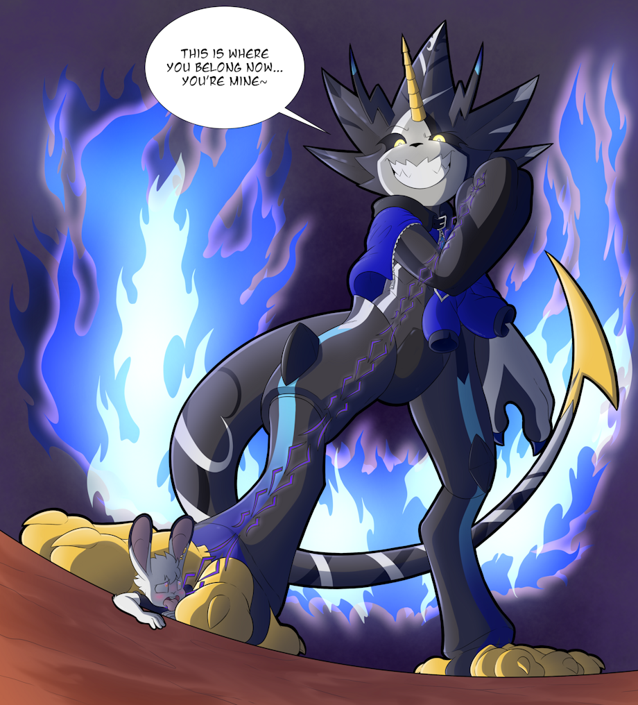 commission for Xale and Keromasou. The bun ended up being caught Xale's GulusGammamon self and it looks like he has fun plans for him :3