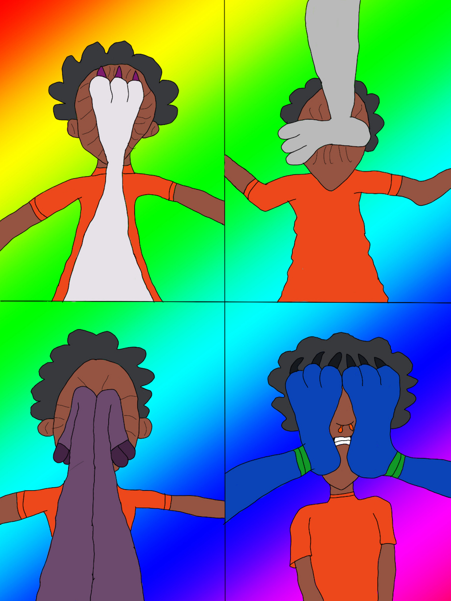 birthday. Well, it was yesterday. I gave him a four panel of comic of his character Damien getting some birthday kicks from the girls. ---- The girls want to celebrate their creator's birthday by giving him a show. They see Damien and take pictures of thei martial arts kicks on him. 1-Pepper starts first as the most recurring member of the group. She uses a basic front kick to open up the attack. 2- Molly wants something with more dynamic, so she hits Damien in the middle of the face with a flying side kick. 3- Blanche does a mule kick. Her hooves cave his face in. 4-The combo is finished By Pepski, who slams her large paws into Damien's face. Needless to say, Gritzmo appreciated the show. ---- Characters belong to