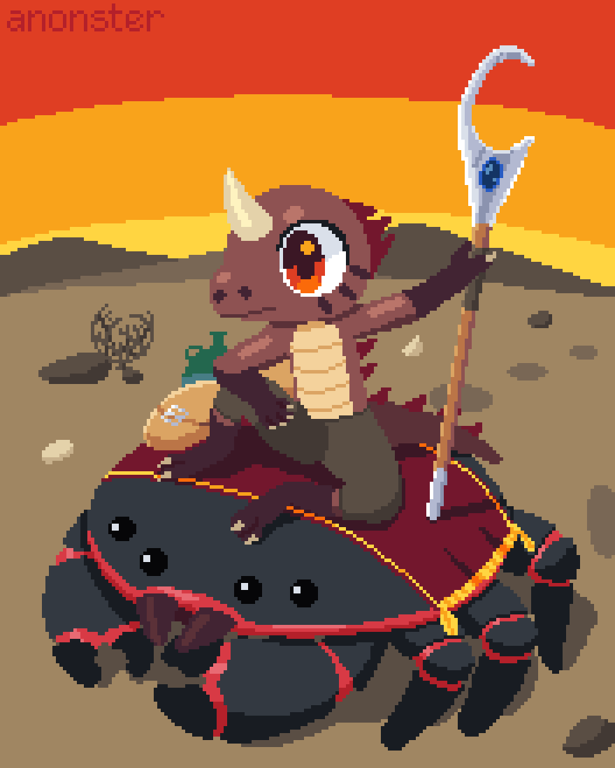 I've had this idea for a while. This is a symbiotic pair of species that live on a desert planet. The Krii sits atop the Robi and they share a common language.