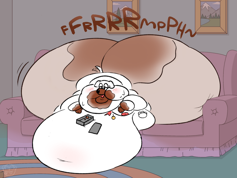 But he can't eat it because he will outgrow the couch and stink up the whole house and get really fat... But it's SOOOO GOOD! So he eats it anyway!