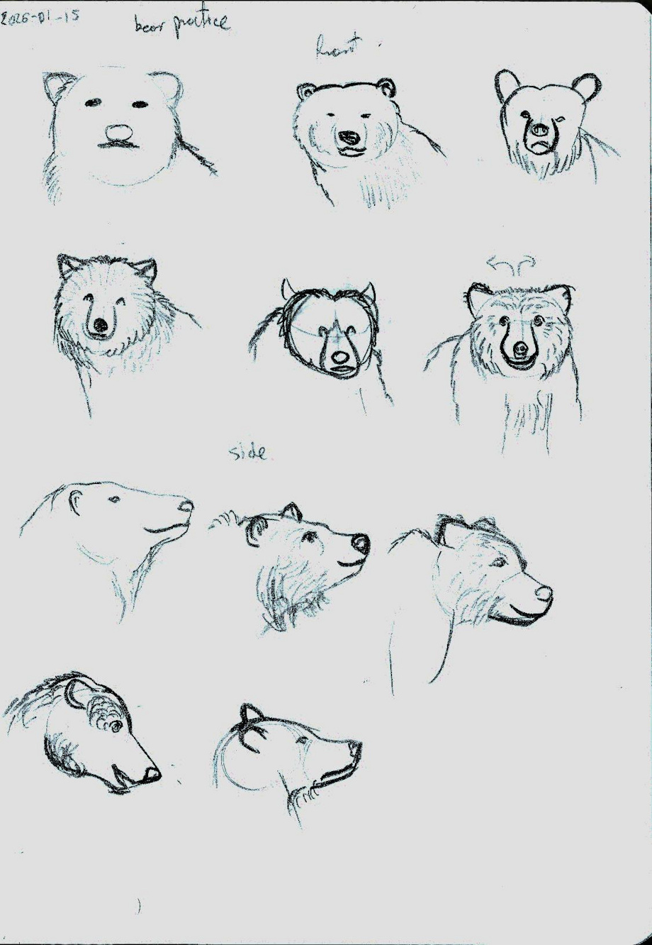 Bear head practice sketches