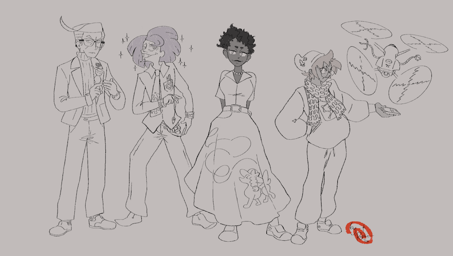Miyu doesn't have much interest in following gossip about her dad and would really rather live her own life away from him. It's not that he's not nice! He's embarrassingly fond of her, in fact (I mean, literally, that suit jacket is basically the equivalent of pinning a picture of your daughter to your work uniform only in front of thousands of viewers lol), it's just that she has a complex about being treated special and her dad's celebrity only feeds into that. But she ended up having to rely on his word to land her current job - and the apartment she rents is jointly owned by the ace Pokémon partner of Minerva, the third from the left there. (in case you're wondering, too, she happens to hold the top spot among the four...)
