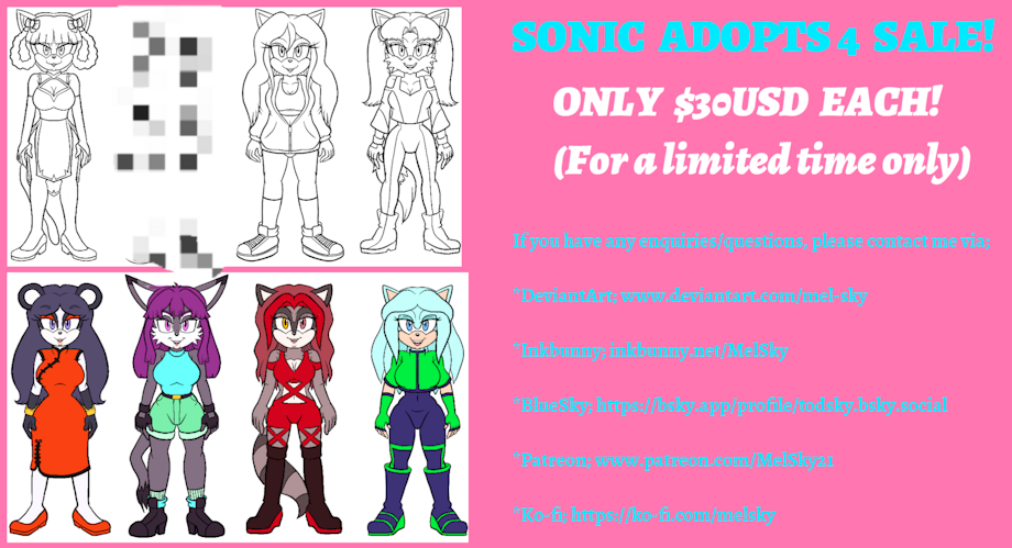 So I made some new Sonic adopts for sale, but for a limited time ONLY: