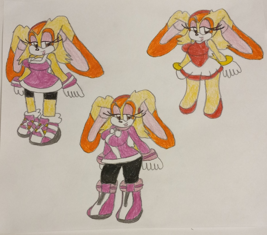 Older Cream dressed as Amy in her Mario and Sonic Olympic outfits.