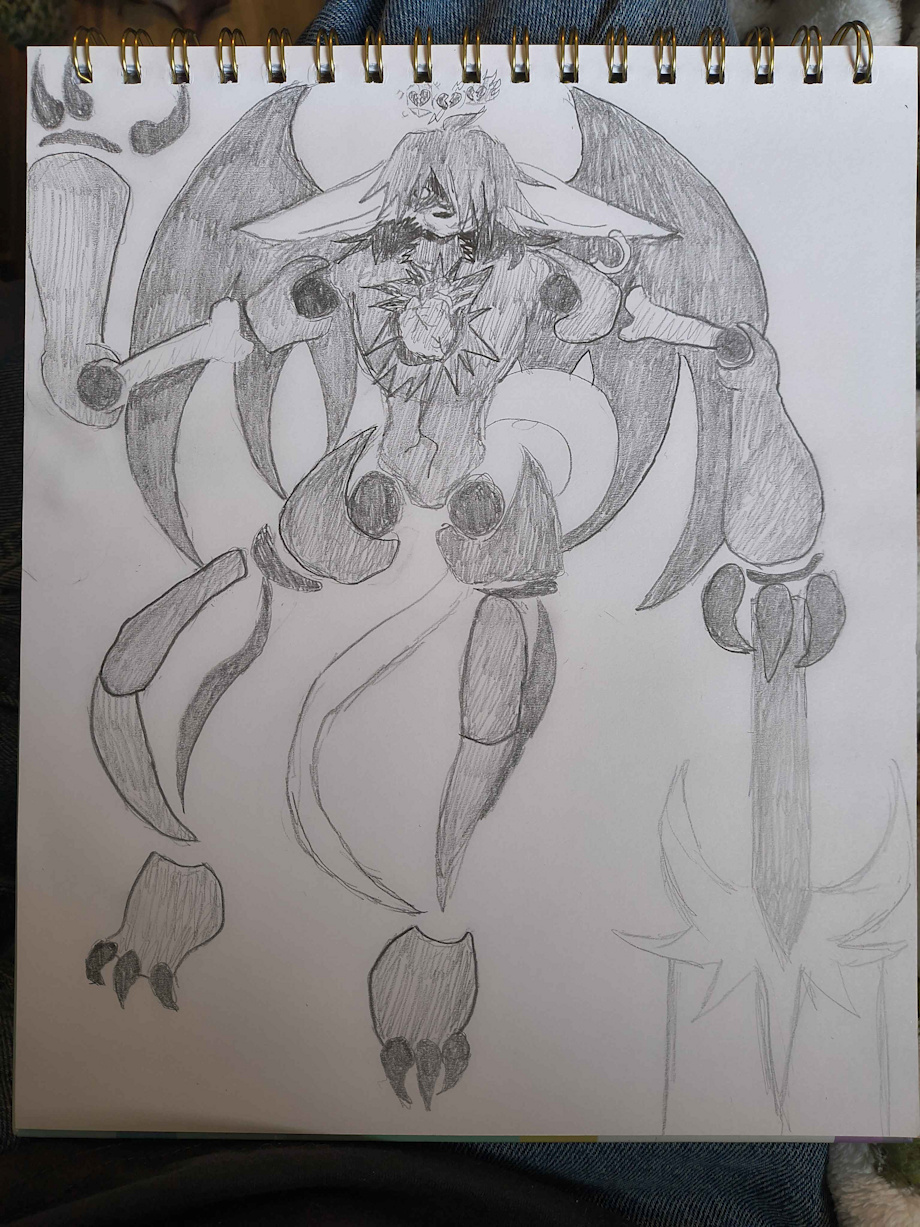A sketch I did a while back of Joltie if he were like a boss from a dotHack game, with some extra edge (the exposed heart). Probably the most badass, edgy thing I've sketched in a long time. lol