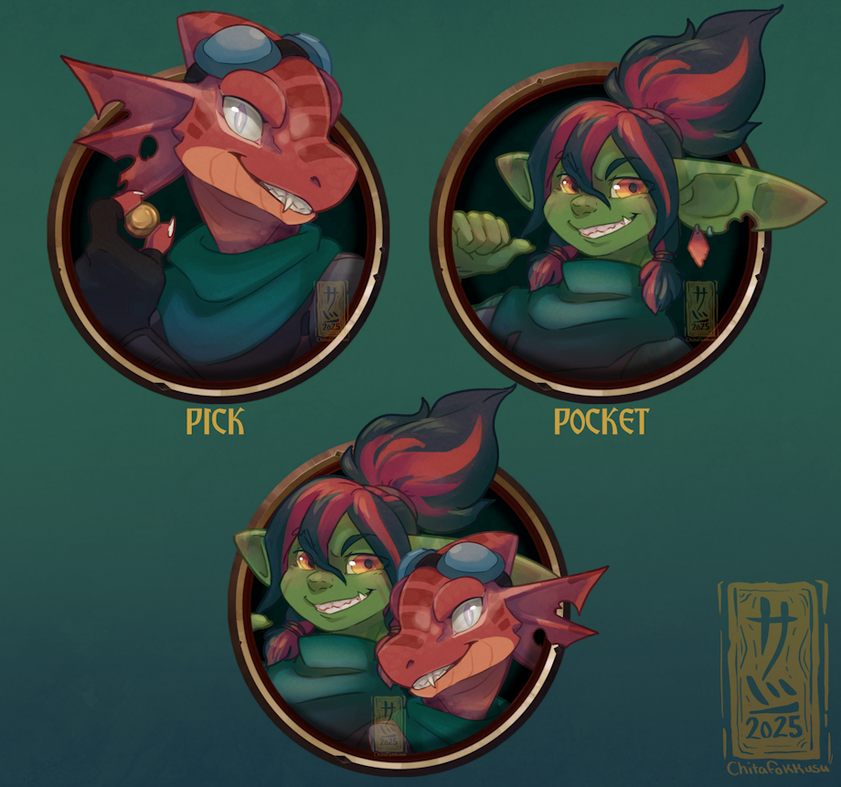 If ever your adventure party come across two travelers in need be weary as they might be these two little rascals, who want to steal some gear and loot. A dastardly duo our DM Blue made to prey on our group's love for little guys, we were caught of guard during our battle with them. and though our party was able to handle them, however death does not stop these two. Revived and now sporting death marks, these trouble makers are able to make mischief and coin once again! I don't know what my DM has in plan for Pick and Pocket but I had a lot of fun making these tokens! Pocket is my favorite among these two!